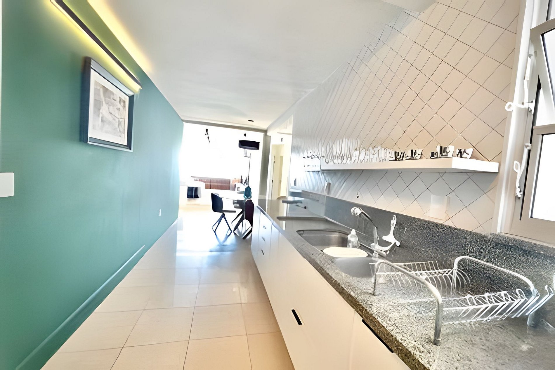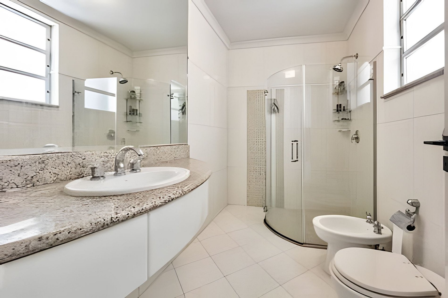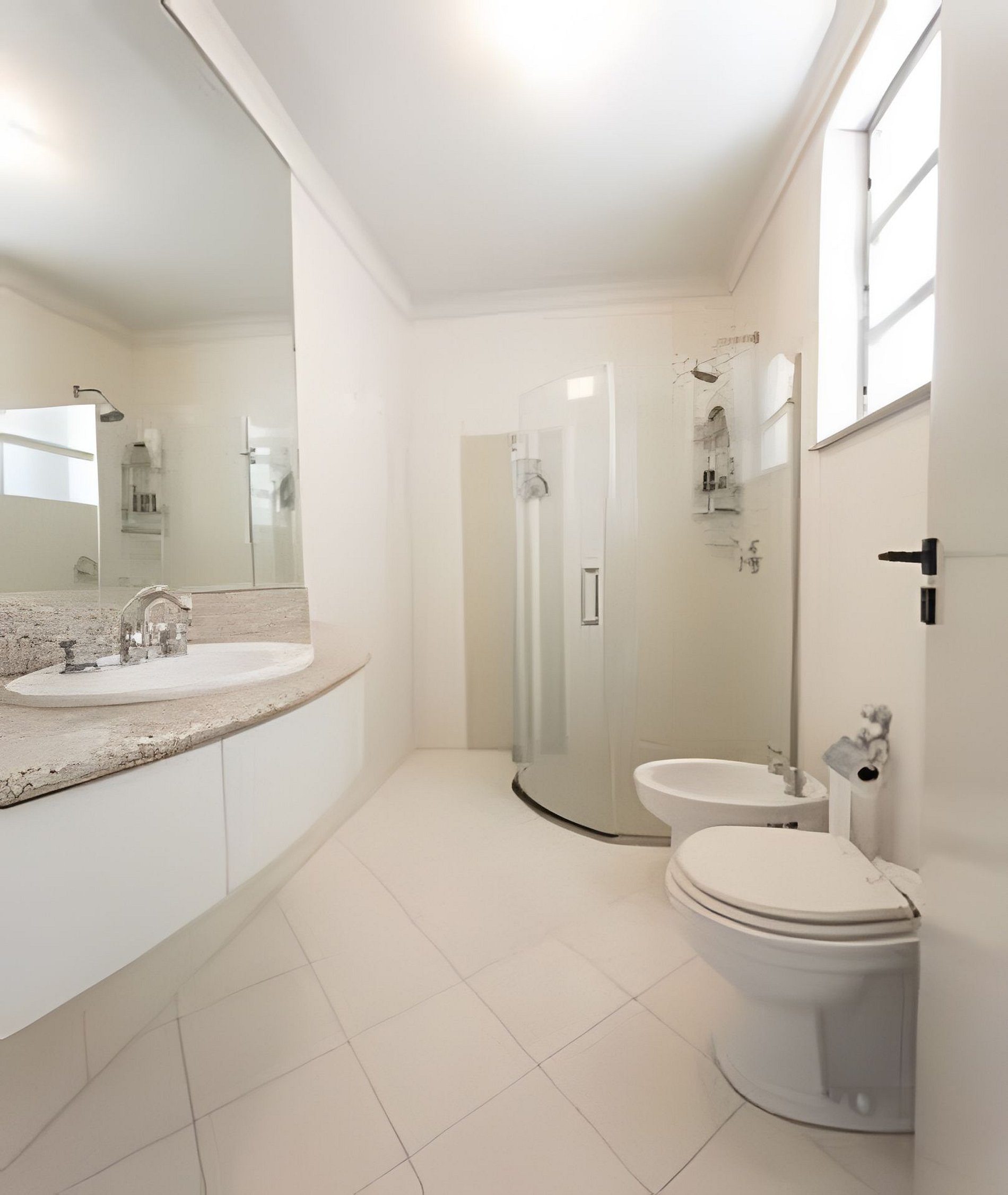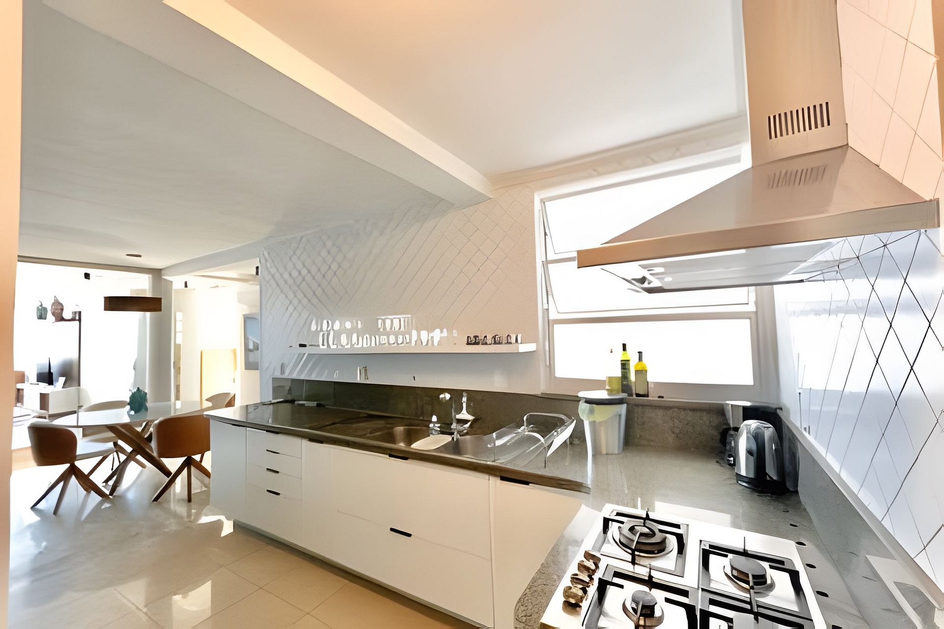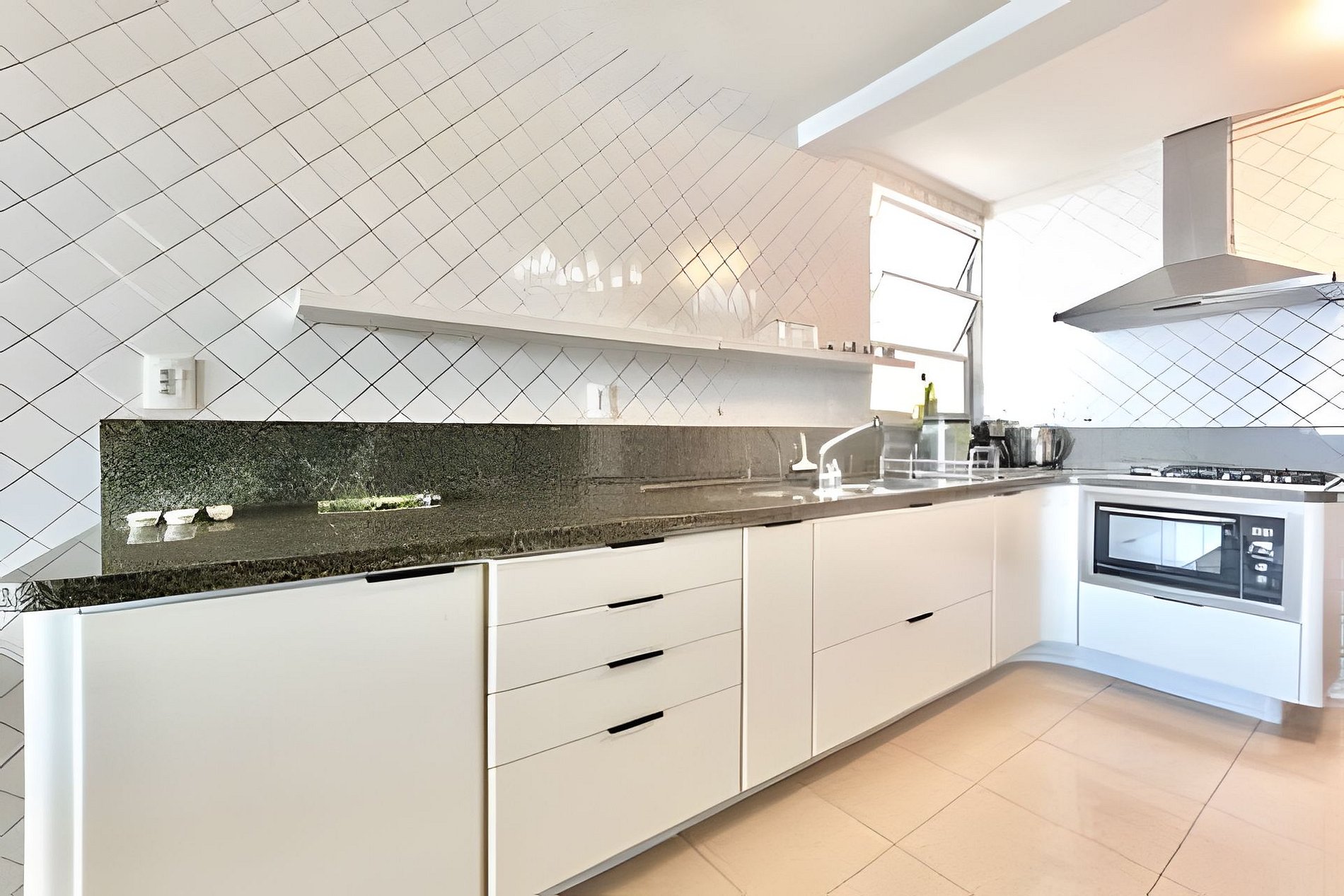 Relaxe na ampla sala de estar ou prepare delícias na cozinha completa. Com lavanderia e dois banheiros modernos, sua estadia será prática e confortável.