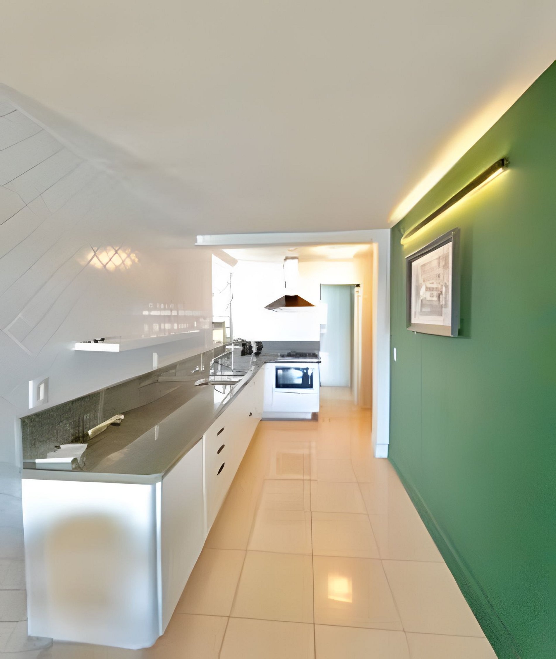 O apartamento com ar-condicionado dispõe de 3 quartos separados, cozinha completa equipada com geladeira e forno, além de 1 banheiro. Para seu entretenimento, conta com TV de tela plana e console de videogame.